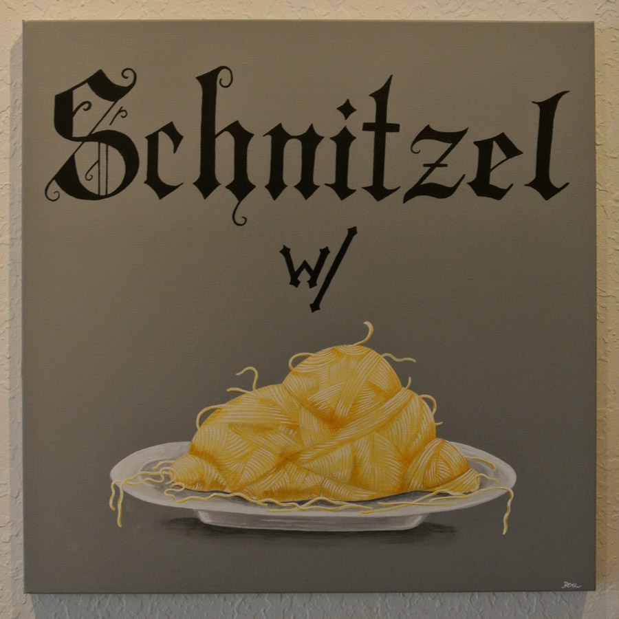 | SCHNITZEL w/ NOODLES Rebekah Lazaridis Acrylic on Canvas 20" x 20" |