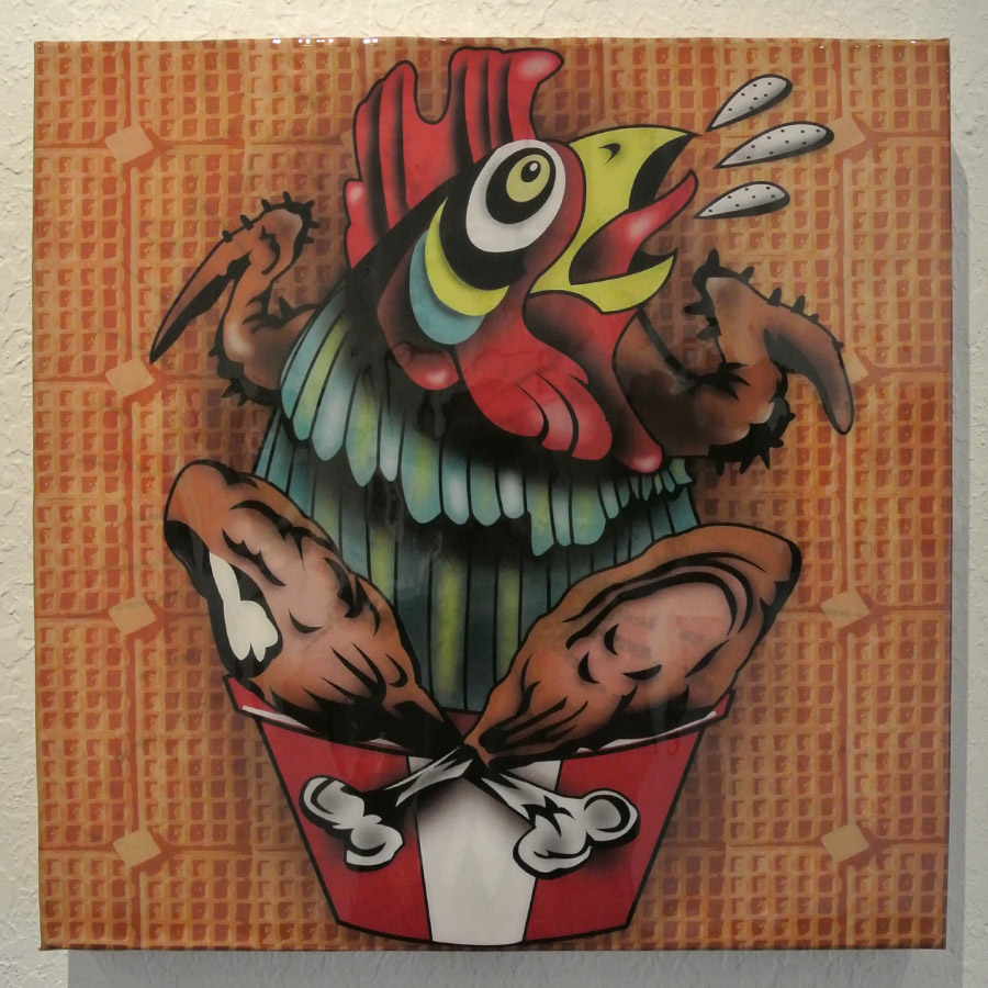 | CHICKEN & WAFFLES Todd Frain Digital Print & Resin on Wood 18.5" x 18.5" |