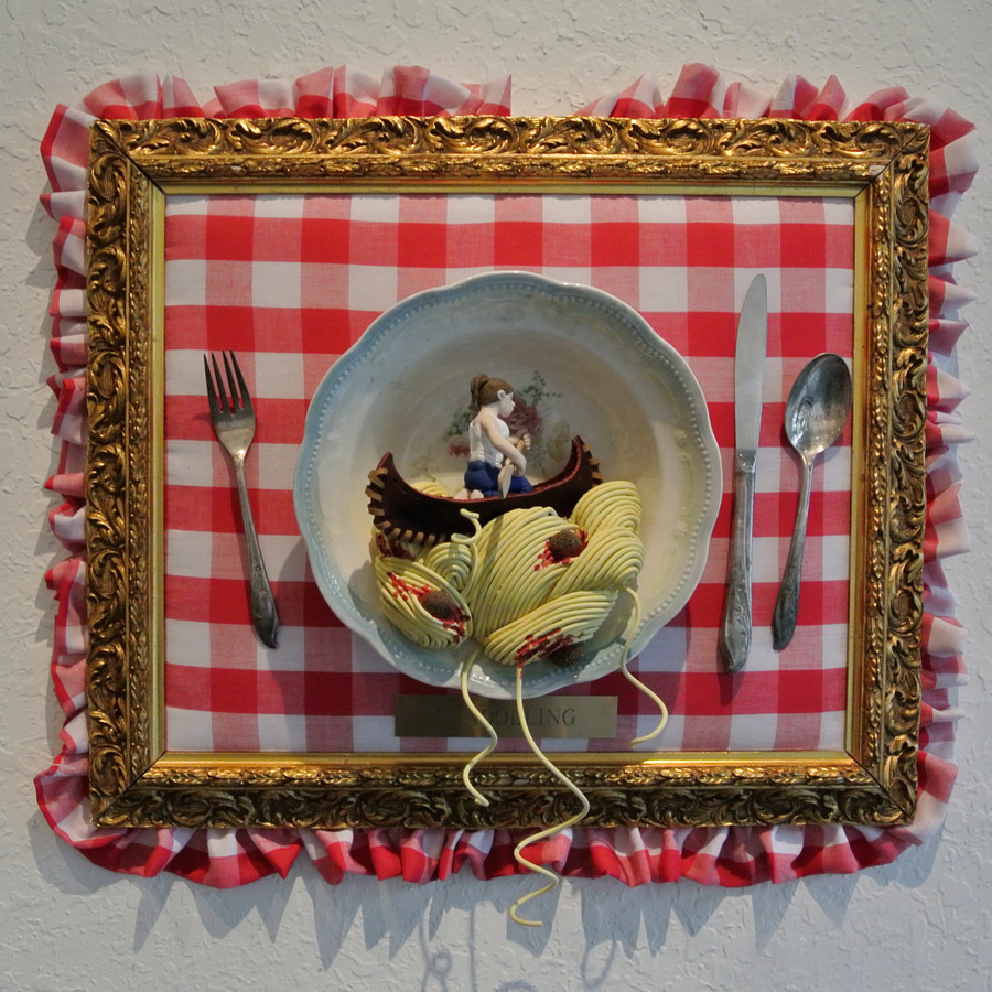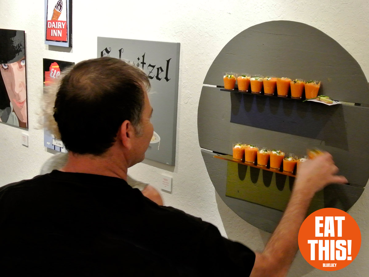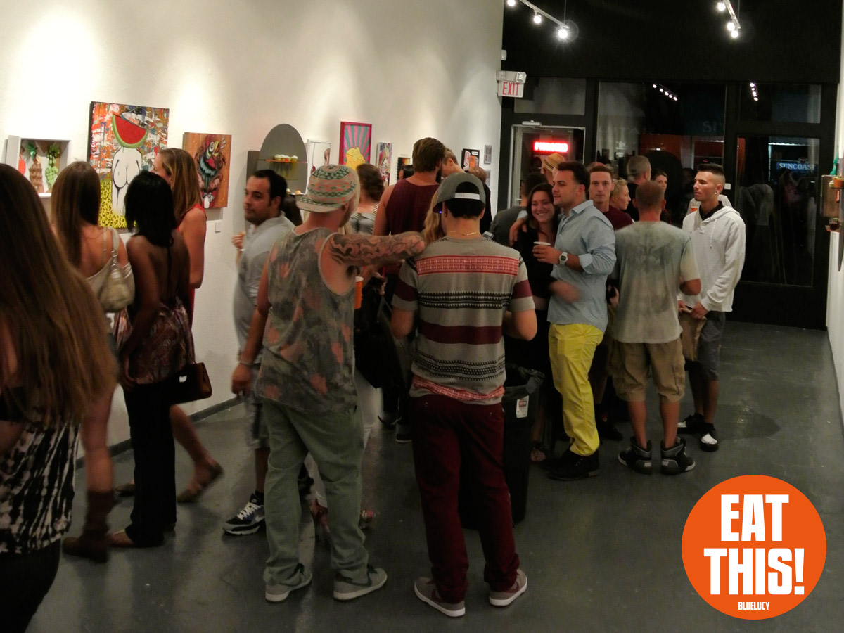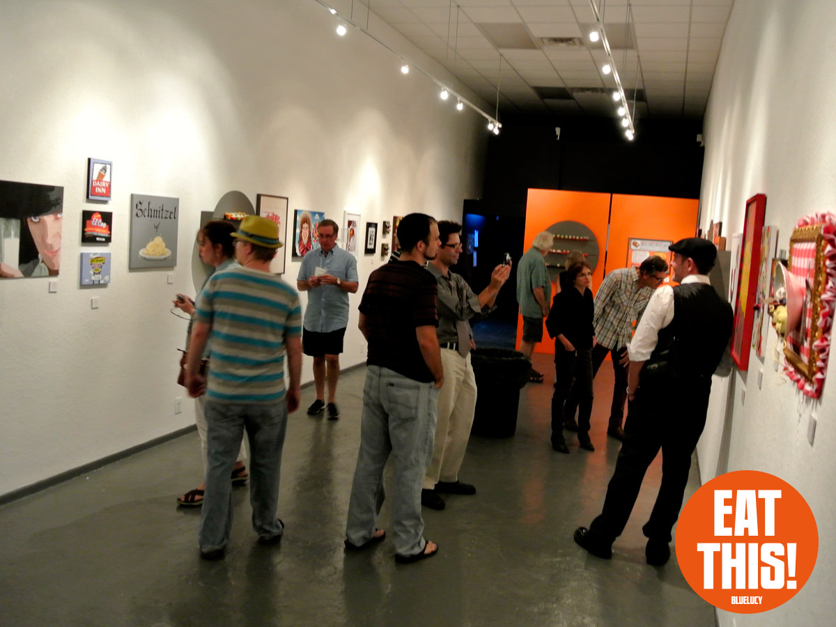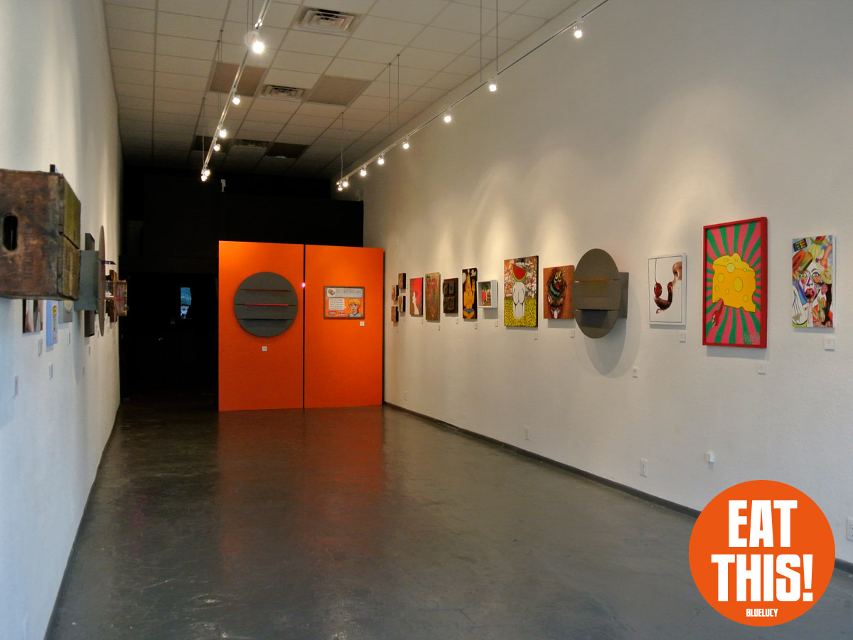 EAT THIS! The Art of Food Exhibit. Participating artists: Tonny Ayers, Brandon Bailey, Julie Brookins, Kristi Leigh Capone, Theresa Crout, Coralette Damme, Amanda Dawson, Perry deVick, Demeree, Jessi Donnelly, Todd Frain, Dominice Gilbert, Joshua Haynes, Eric Kent, Rebekah Lazaridis, Joanna Ledingham, Anna Luther, Carrie Matteoli, James Michael McCracken, Sharon Norwood, James Oleson, Taylor Pilote, Zos Pistola, Gabriel Ramos, Robert X. Rules, Jeremy Tollberg, Julia Updegraff, Vegetable, Bob Vieira, Jamison Waddell, Ceri Watkins, Jameson Wilkins, and Sue Woodall. Delectable treats by EAT THIS! Bluelucy Gallery • 653 Central Avenue • St Petersburg FL 33701