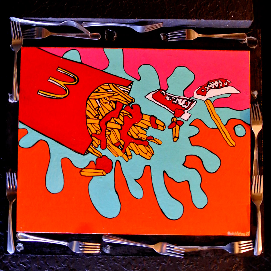 | FRIES & FORKS Bob Vieira Mixed Media 22" x 20" |